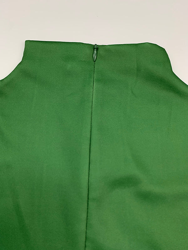 A-Line Long Sleeves Flower Print Split-Joint High Neck Midi Dresses