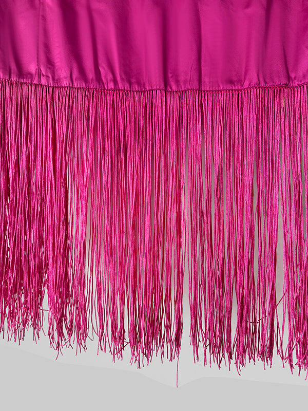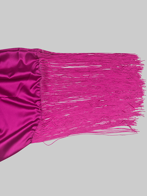 Batwing Sleeves Loose Solid Color Split-Joint Tasseled High Neck Evening Dresses Maxi Dresses