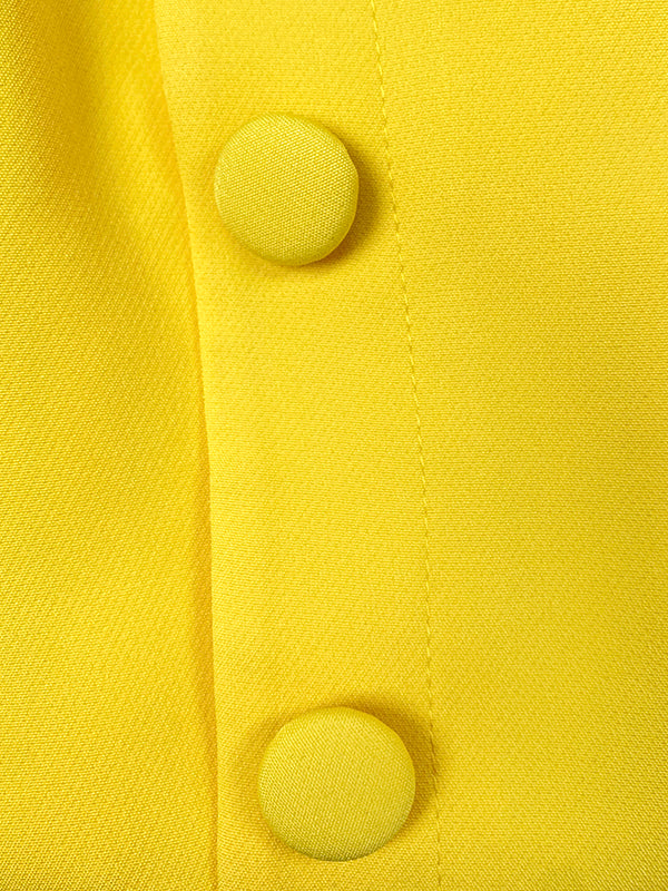 Flared Sleeves High Waisted Buttoned Solid Color Mock Neck Midi Dresses