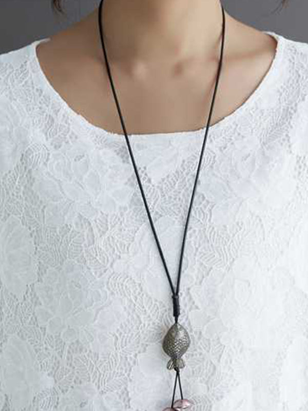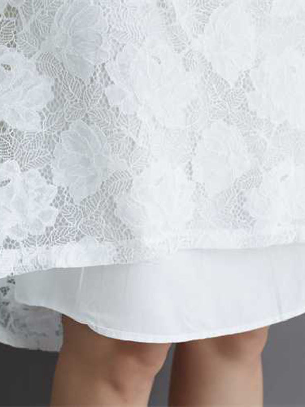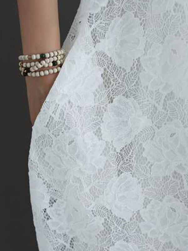 Half Sleeves Loose Hollow Solid Color Round-Neck Midi Dresses