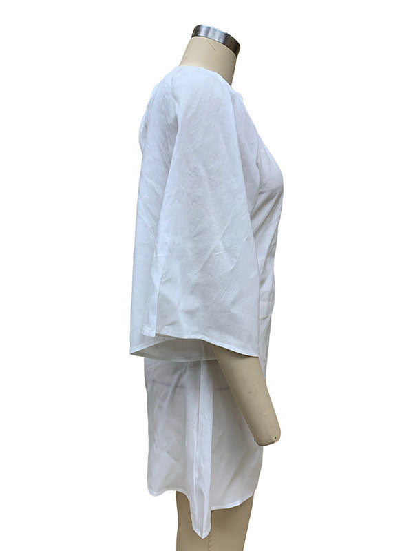 Loose Three-Quarter Sleeves Asymmetric Elasticity Solid Color One-Shoulder Mini Dresses